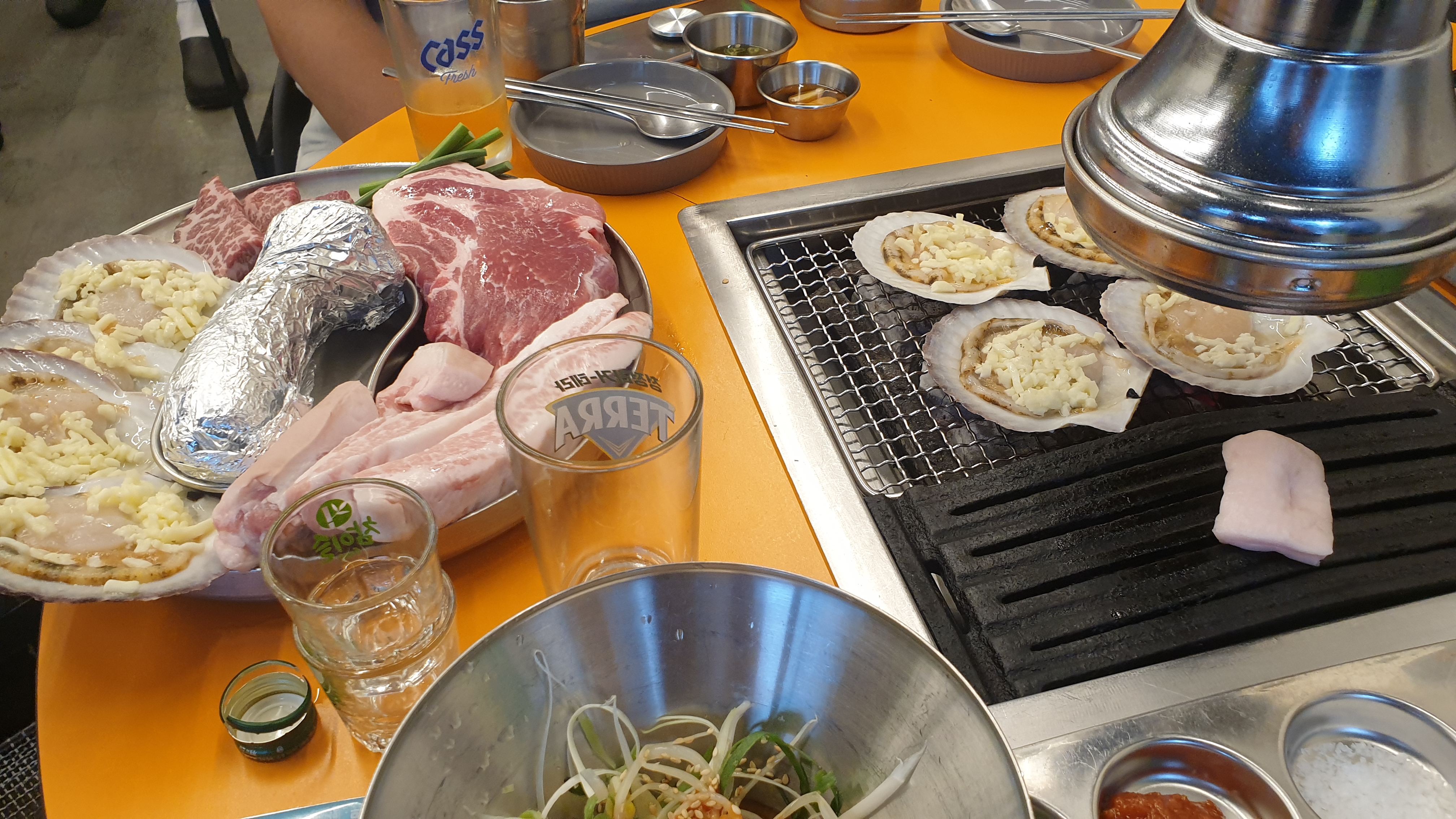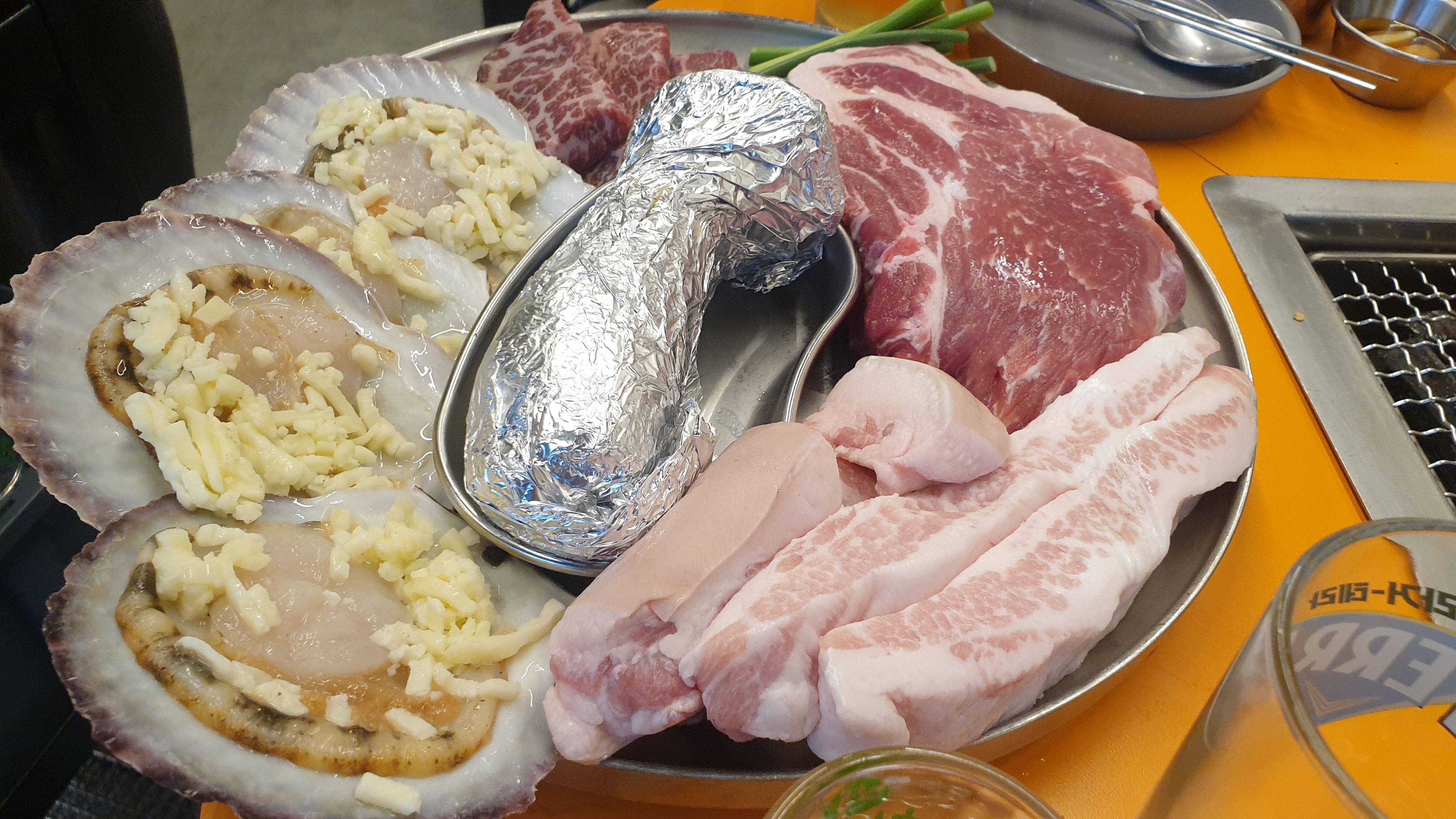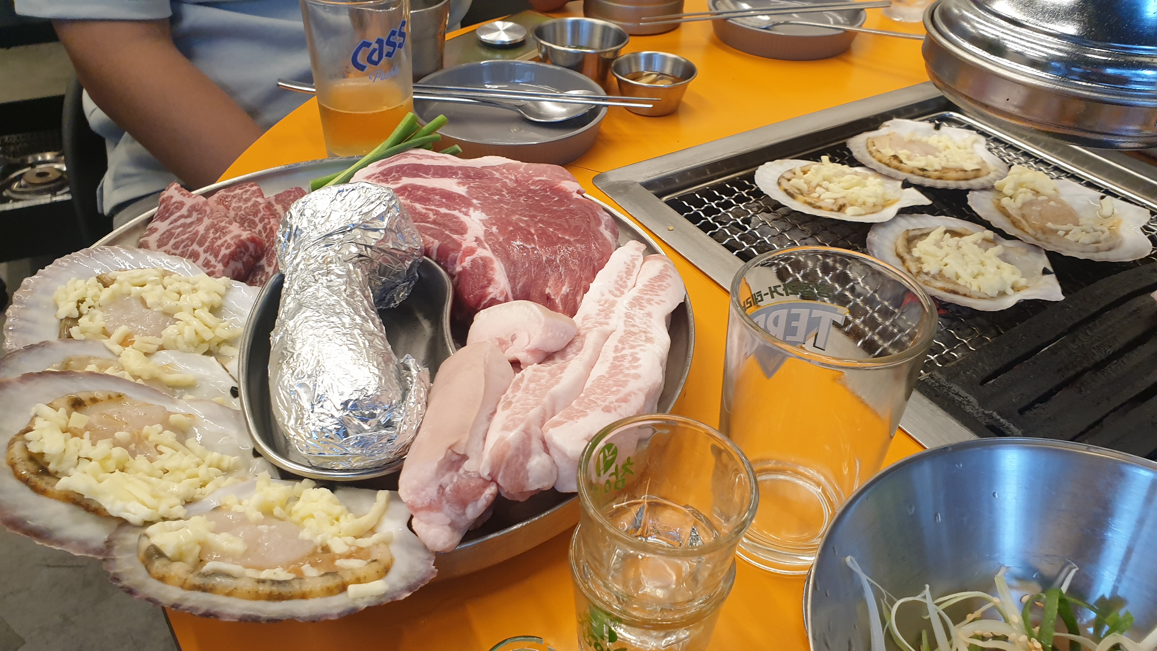모듬메뉴에 가리비 조개가 함께나온다는 점이 매우 신기함
