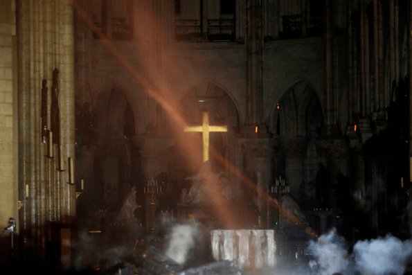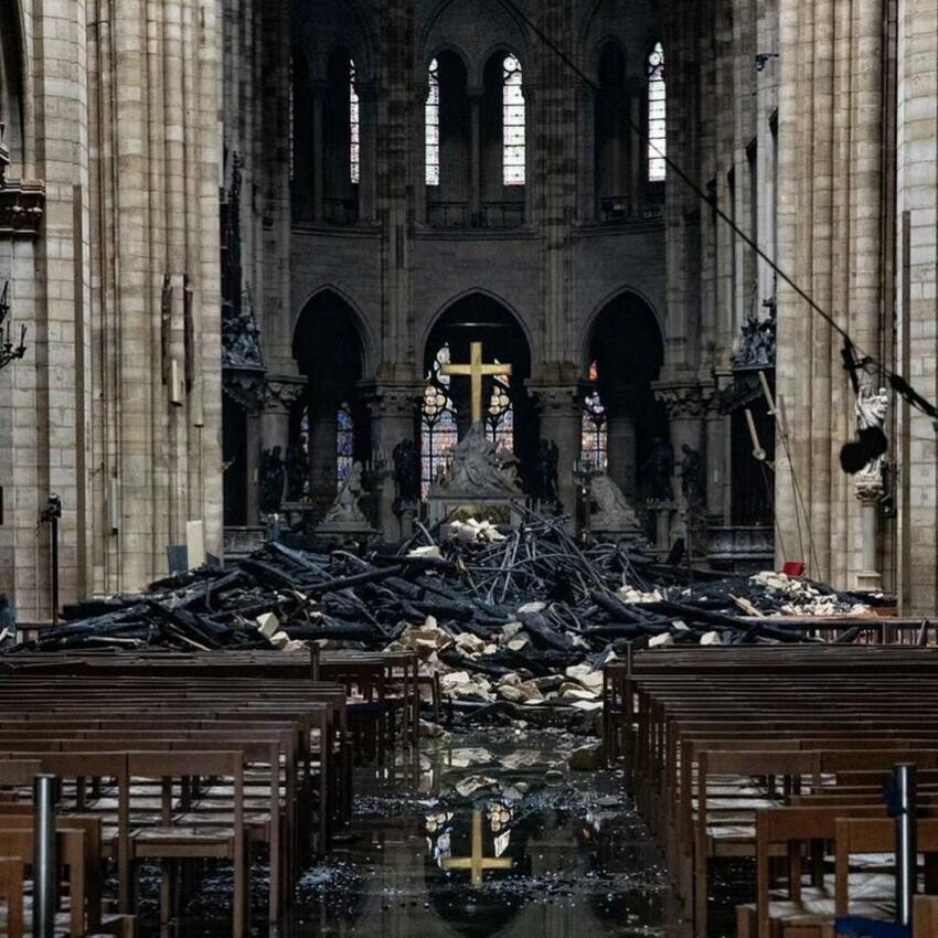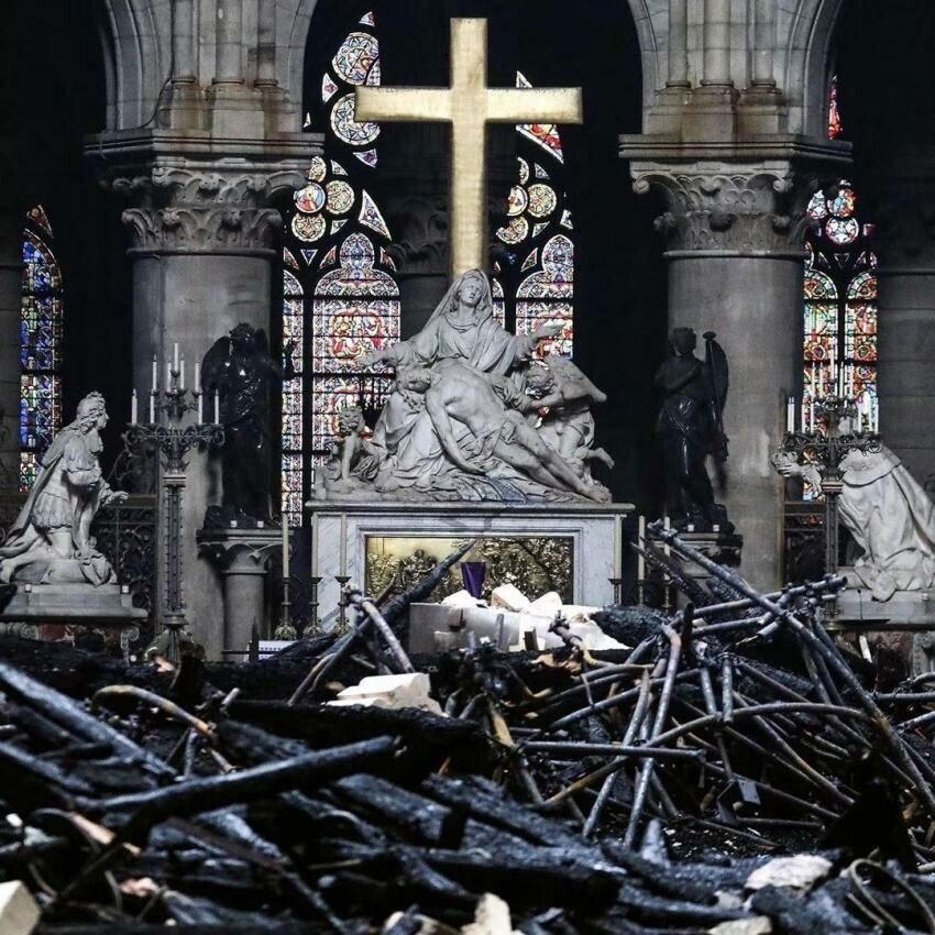 며칠전인 4월 15일 프랑스 노트르담 대성당에 발생한 화재가 진압된 뒤 촬영된