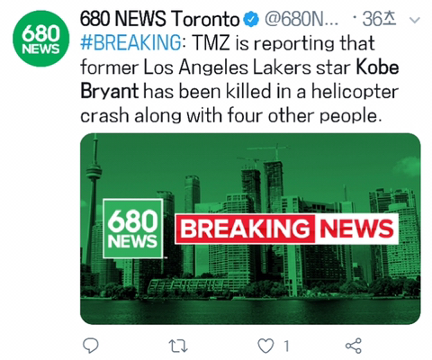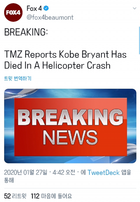로스앤젤레스 레이커즈(Lakers)의 '블랙맘바' 코비 브라이언트(Kobe Bryant)가 사망했다고합니다.