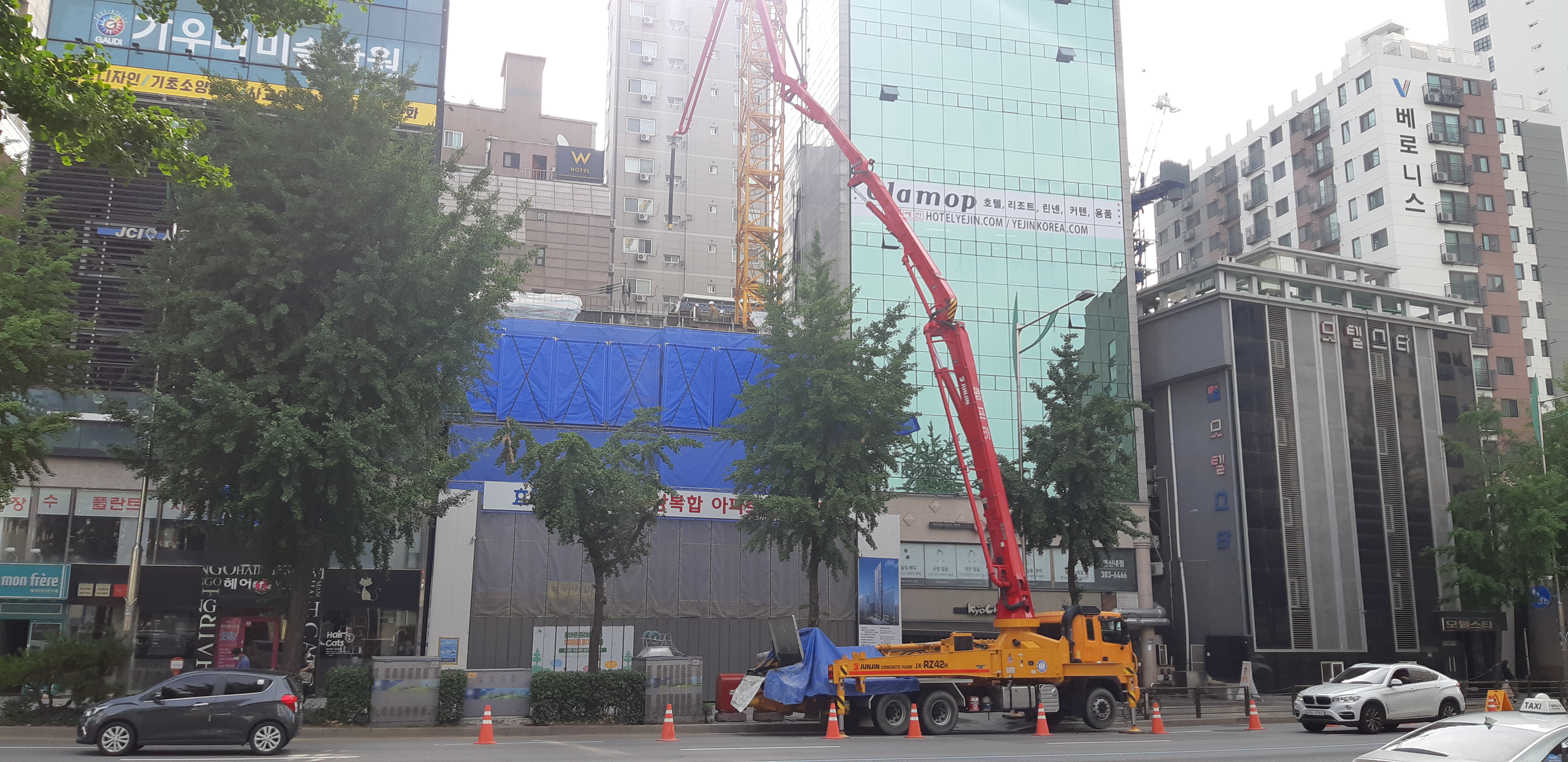 오늘은 콘크리트를 주입하는 차량이 작업중이었네요.
