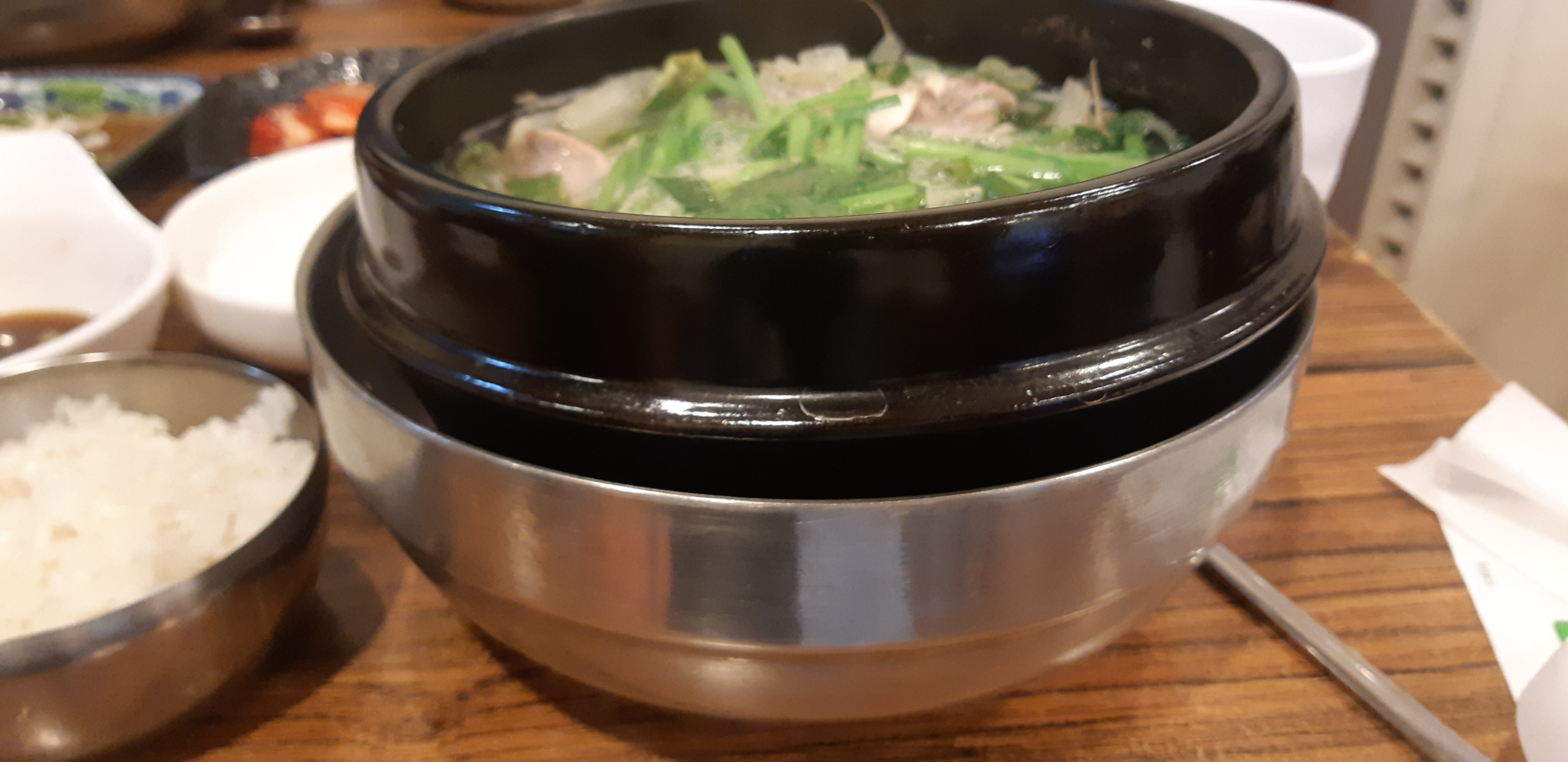기존 뚝배기 아래에 스테인레스 사발을 받쳤다.