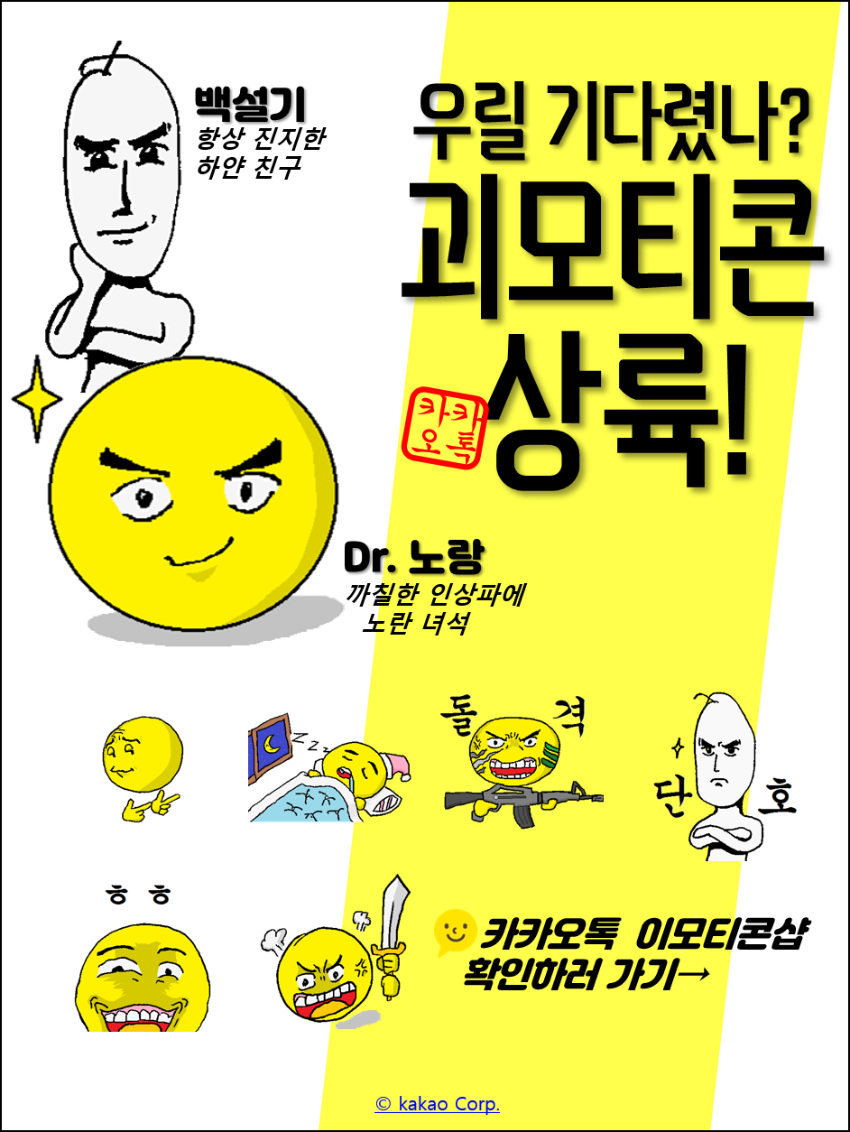 도트감성이 도드라지는 괴모티콘 친구들이 모였습니다. 까칠한 인상파에 노란 박사, Dr.노랑. 항상 진지한 하얀 친구, 백설기 등 괴랄하지만 재밌는 친구들을 소개합니다.