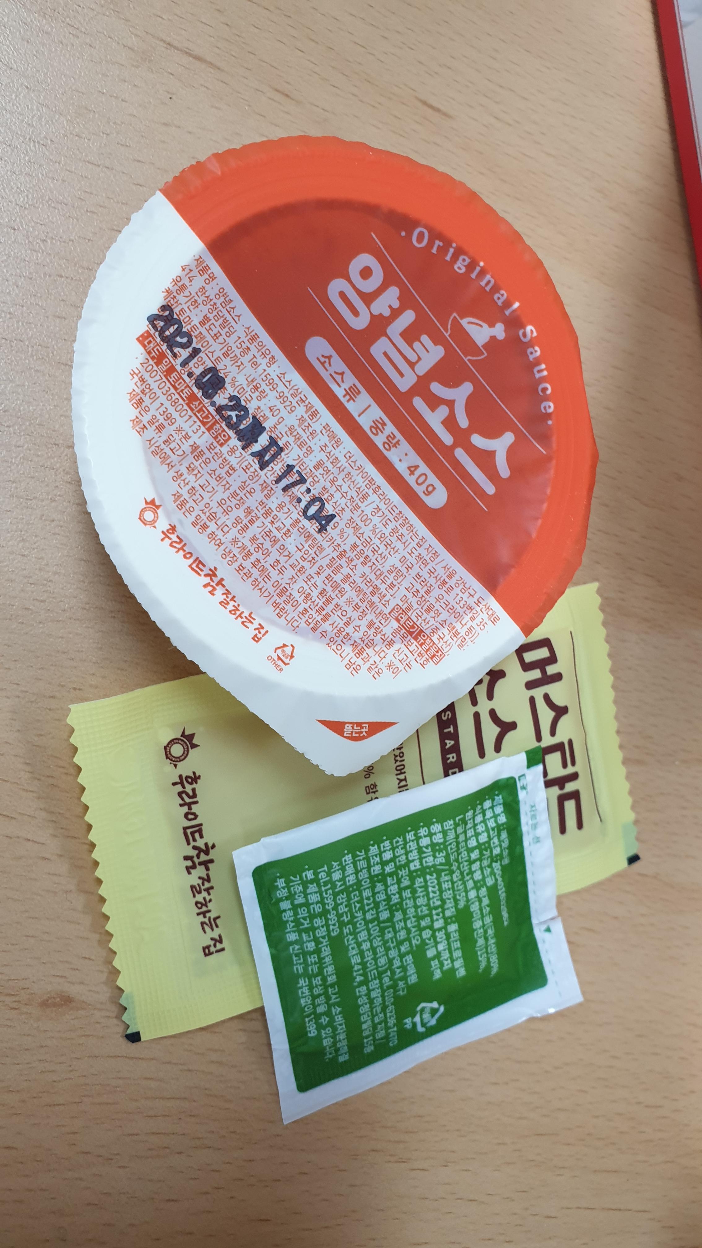 머스타드 소스만 까서 먹었는데 맛있었다.